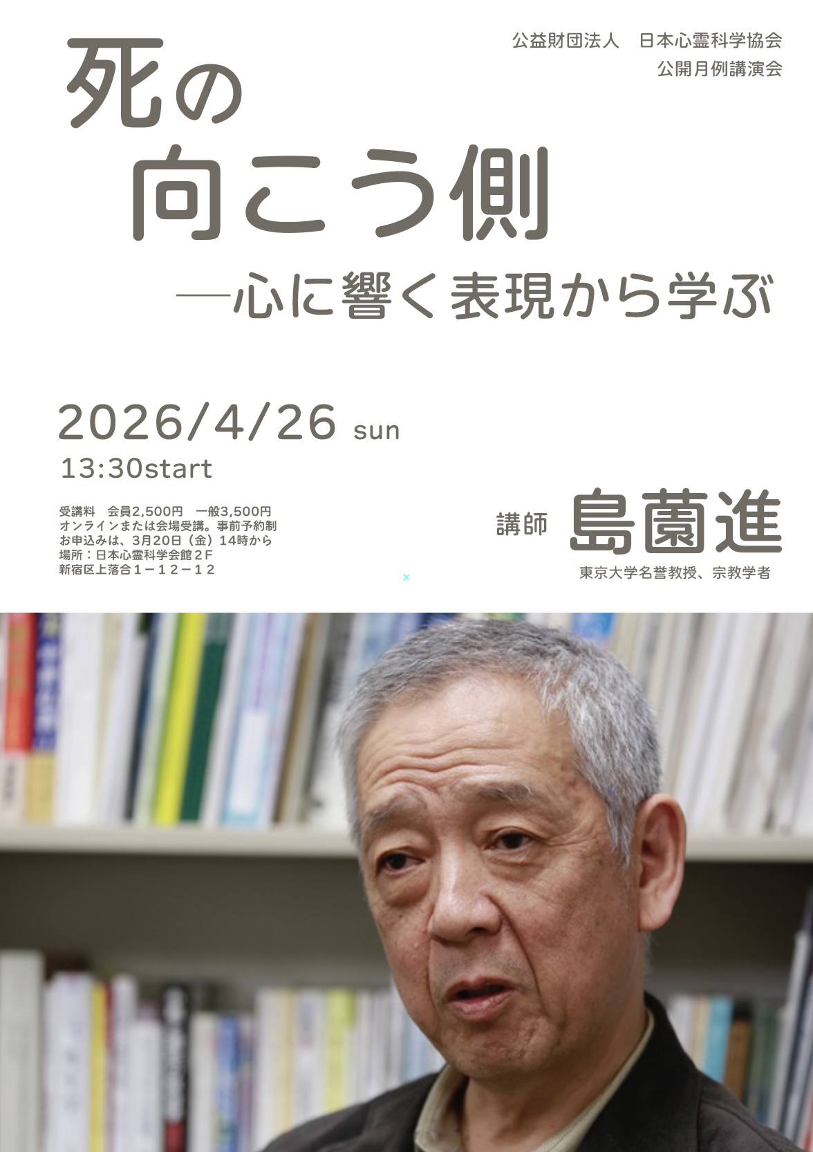 4月講演会 島薗進「死の向こう側――心に響く表現から学ぶ」